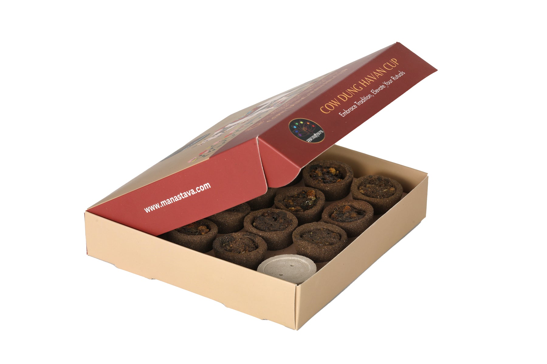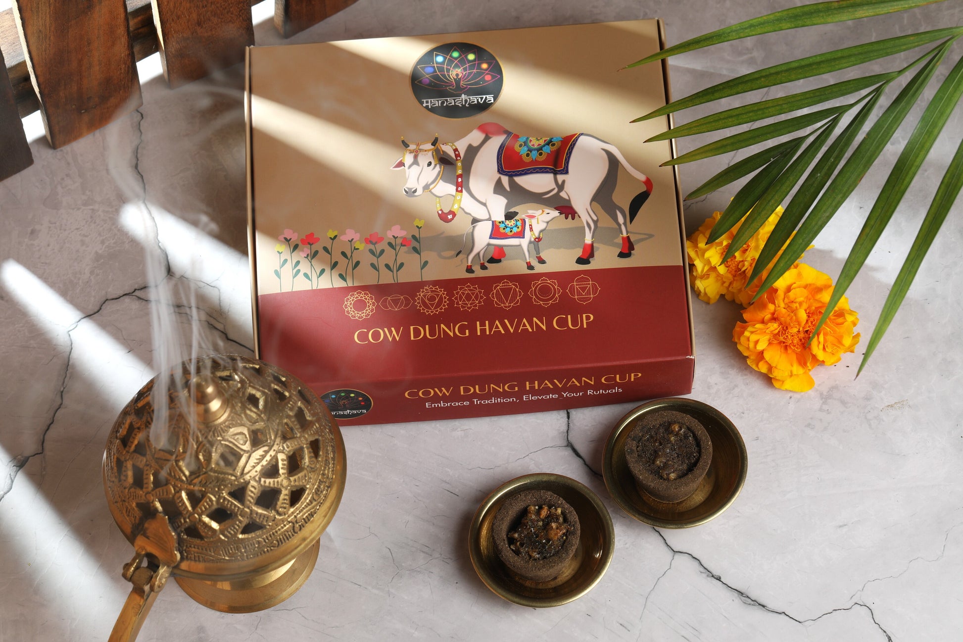 Welcome to the sacred world of Manastavaa, where tradition meets nature in our thoughtfully crafted Havan Cups. Our unique Havan Cups are meticulously made from a blend of cow dung, herbs, and essential oils, creating a harmonious synergy that elevates your spiritual rituals. Embrace the ancient practice of havan with our eco-friendly cups, each infused with the pure essence of nature. Experience the gentle flicker of the flame accompanied by the enhancing the sanctity of your sacred moments. Manastavaa's Havan Cups are not just offerings; they are a bridge between tradition and the natural world, inviting you to connect with the divine in a purifying and aromatic experience. Illuminate your spiritual journey with Manastavaa's Havan Cups and let the sacred scents guide you towards tranquility, grounding, and spiritual renewal.